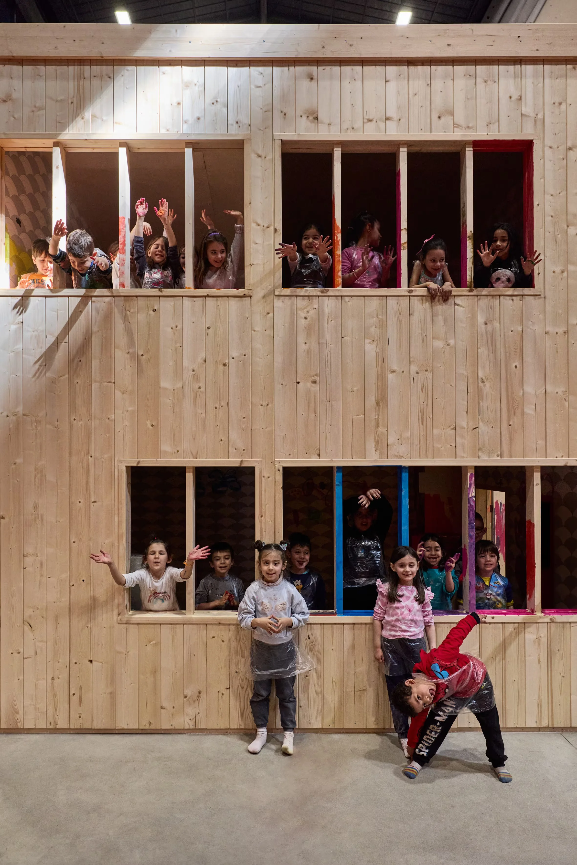 At the Milanese gallery, the cavernous surroundings are inaugurated with visitors partaking in a variety of activities: everything from origami classes, completing jigsaw puzzles, playing foosball, and watching a band perform. Nearby kids play in a half-scale recreation of a modernist family home. Tiravanija surveys the crowds approvingly. “That’s my idea of utopia… chaos,” he says with a nod. “My show should never have an opening; it should only have a closing,” he adds. “In many ways this is the beginning—I am setting up a table and people will come and make something of it.”